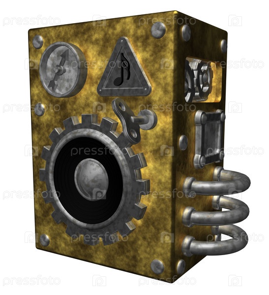 Колонка в стиле стимпанк на белом фоне. 3D иллюстрация