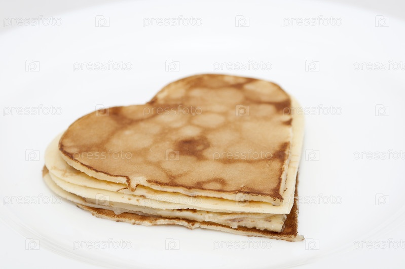 Блинчики в форме сердца на белом фоне