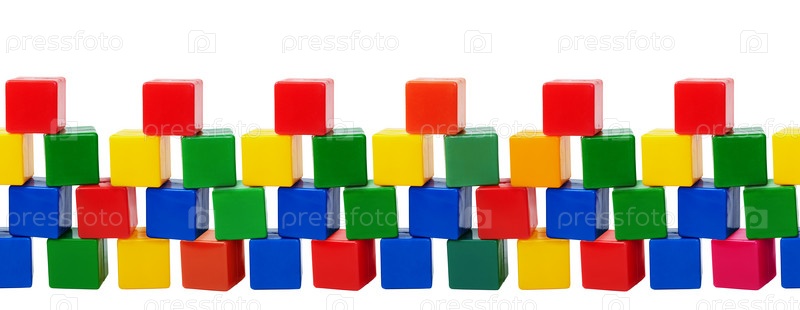 Старые цветный пластиковые кубики, изолированные на белом фоне