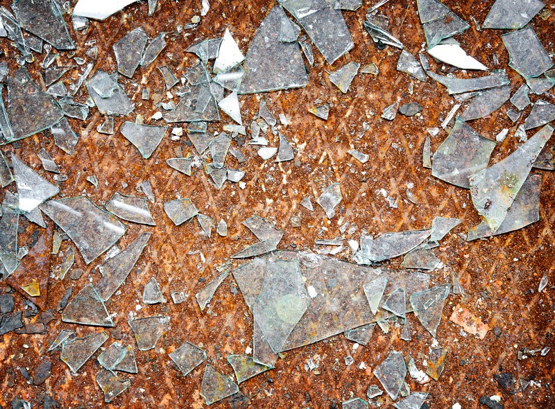 Ржавый металлический пол с осколками стекла