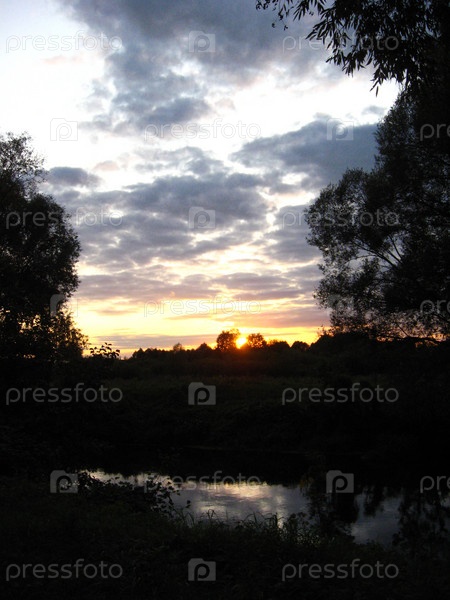 Темный летний закат над рекой