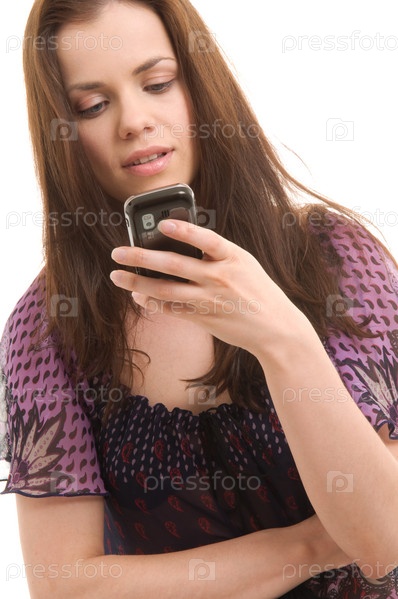 Девушка с телефоном на белом фоне