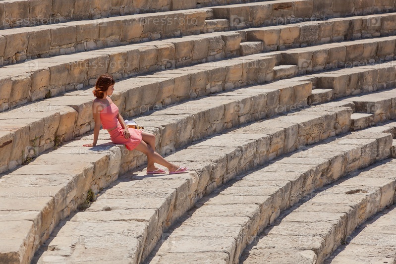 Девушка сидит на ступенях амфитеатра