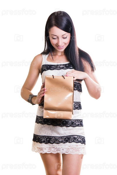 Счастливая девушка с пакетом в руках