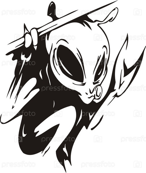 Черный инопланетянин на белом фоне