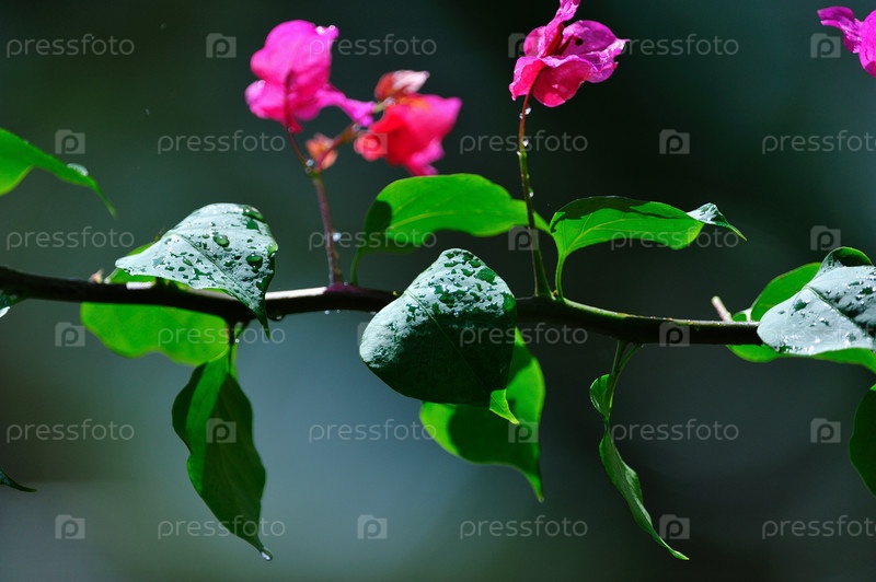 Ветка цветущего растения после дождя