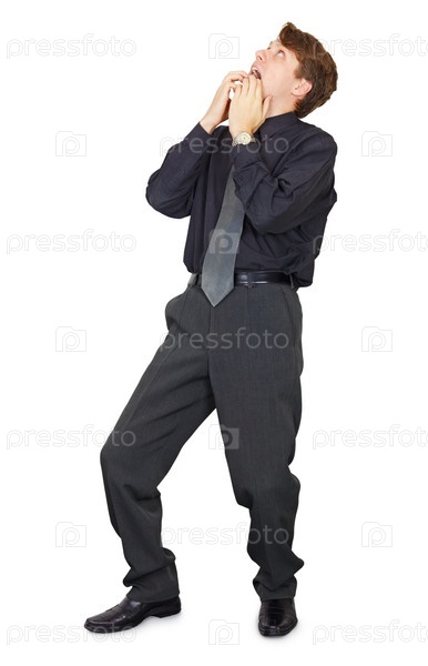 Удивленный молодой человек смотрит вверх