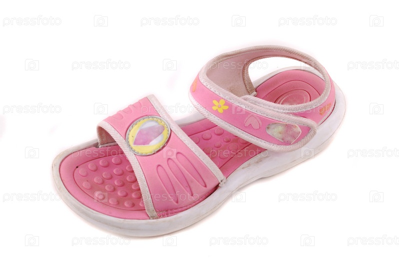Розовый детский сандалик на белом фоне