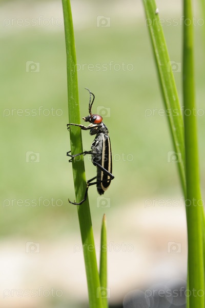 Жук карабкается по травинке