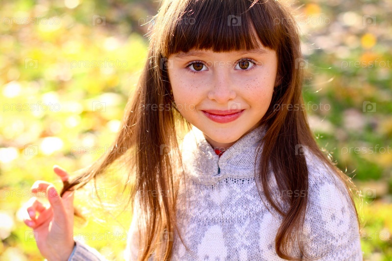 Маленькая девочка в осеннем парке на открытом воздухе