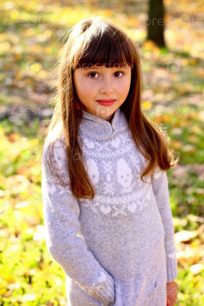 Маленькая девочка в сером платье на открытом воздухе