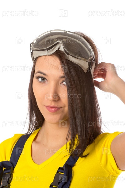 Серьезная женщина-строительный рабочий с очками