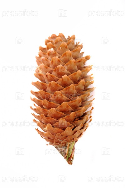Еловая шишка на белом фоне