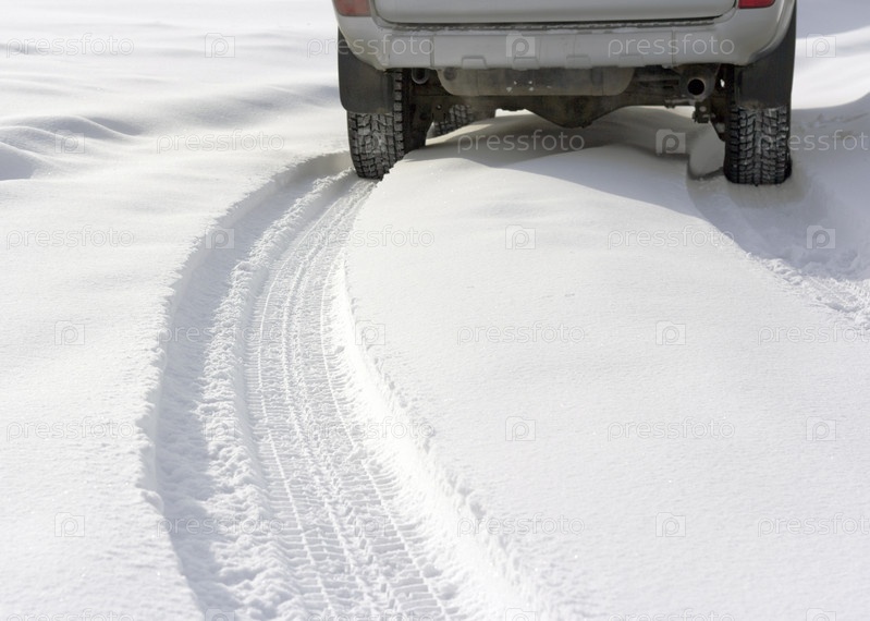Снежная зимняя дорога позади автомобиля