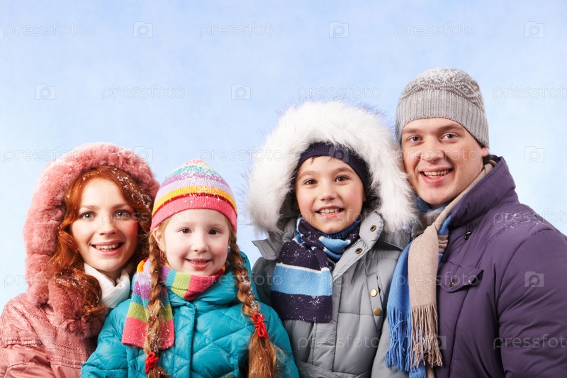 Счастливые члены семьи смотрят на камеру с улыбкой