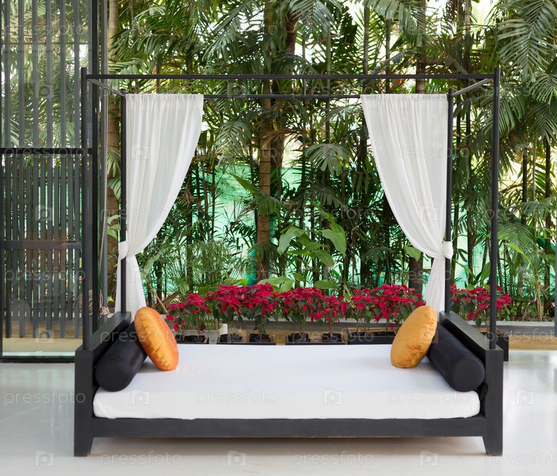 Кушетка в холле тропической гостиницы