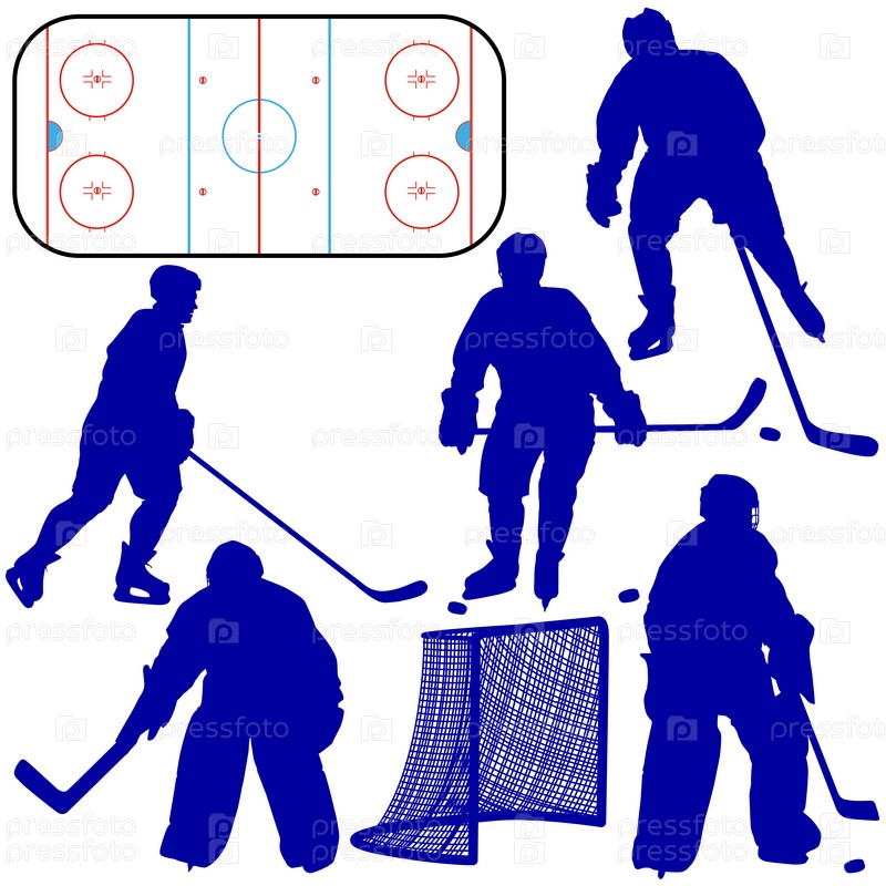 Набор силуэтов хоккеистов. Изолированные на белом. Векторные иллюстрации
