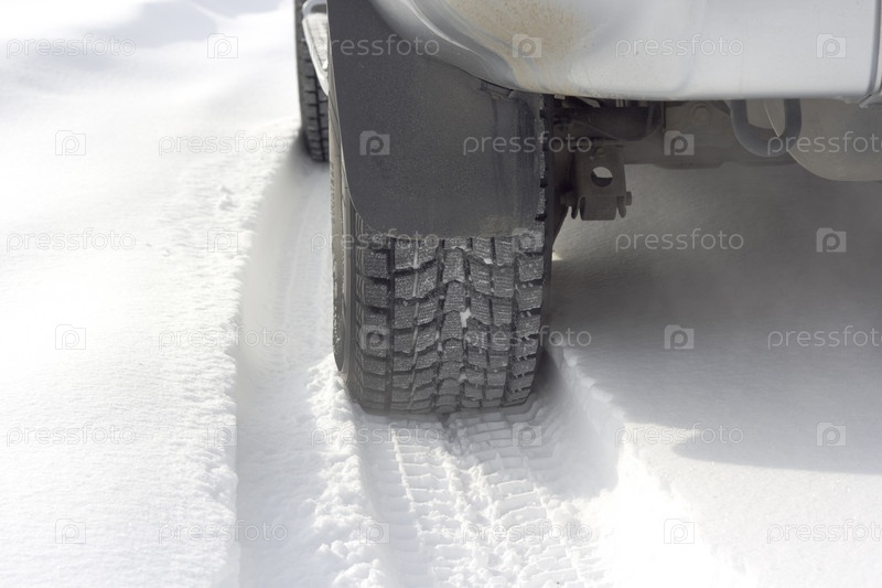 Снежная дорога под колесами автомобиля