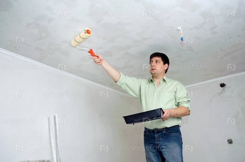 Мужчина красит потолок