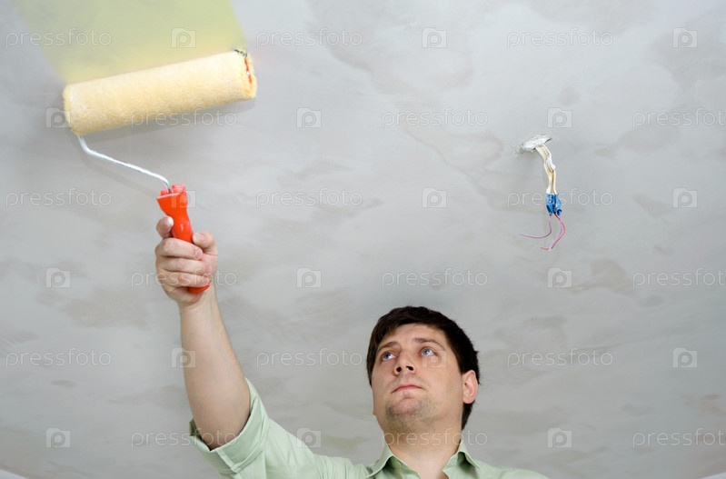 Мужчина красит потолок