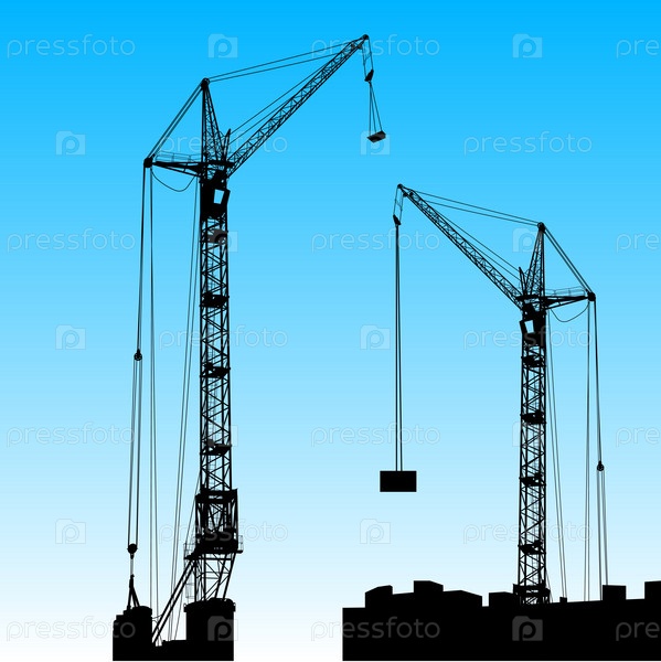 Силуэт двух кранов над зданием. Векторные иллюстрации