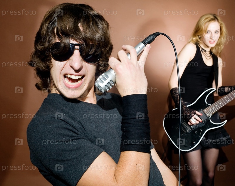Рок-певец с женщиной в студии