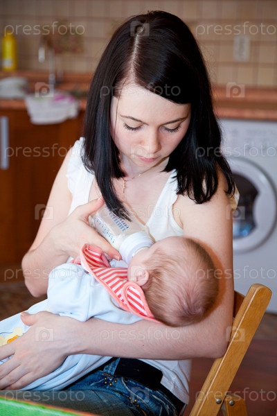 Мама кормит малыша с бутылочки