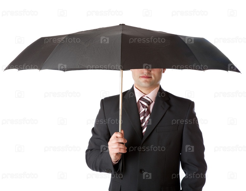 Бизнесмен под черным зонтом