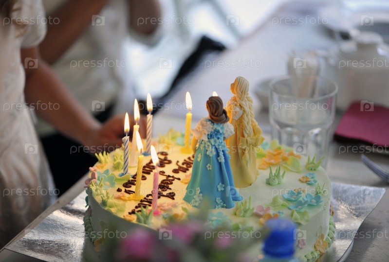 Торт с фигурками и свечками крупным планом