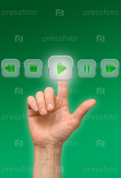 Рука нажимает интерактивную кнопку