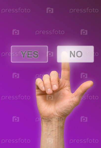 Рука нажимает интерактивную кнопку