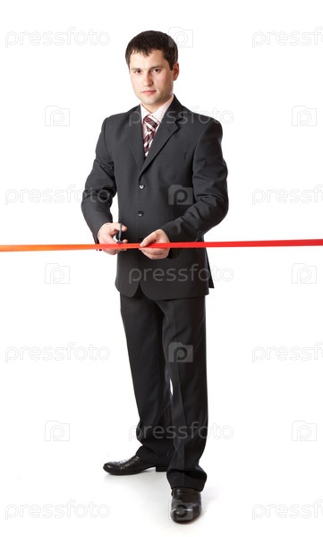 Бизнесмен и красная ленточка