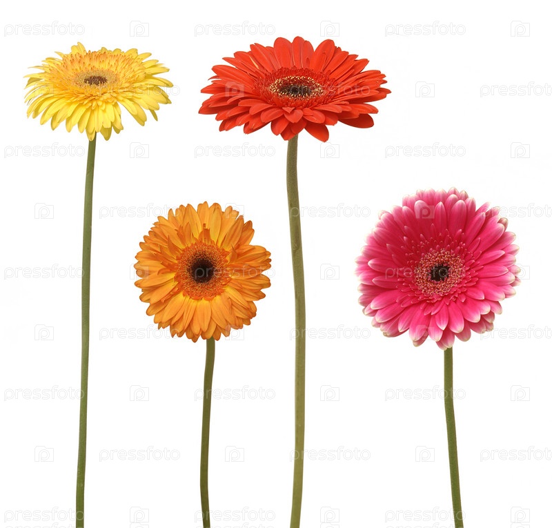 Цветные герберы на белом фоне