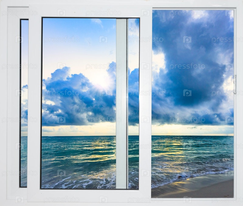 Красивый закат на вид на море из окна
