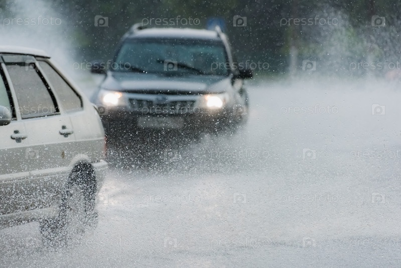 Автомобили едут по лужам