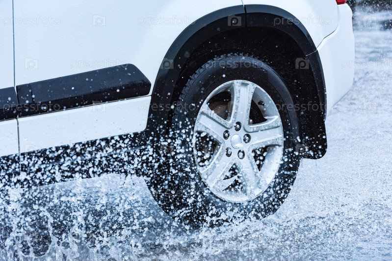 Брызги из-под колес автомобиля