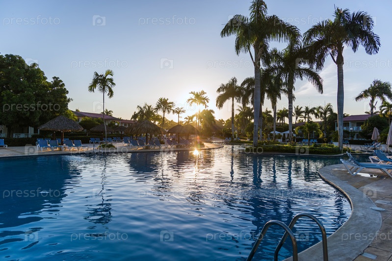 Бассейн с шезлонгами