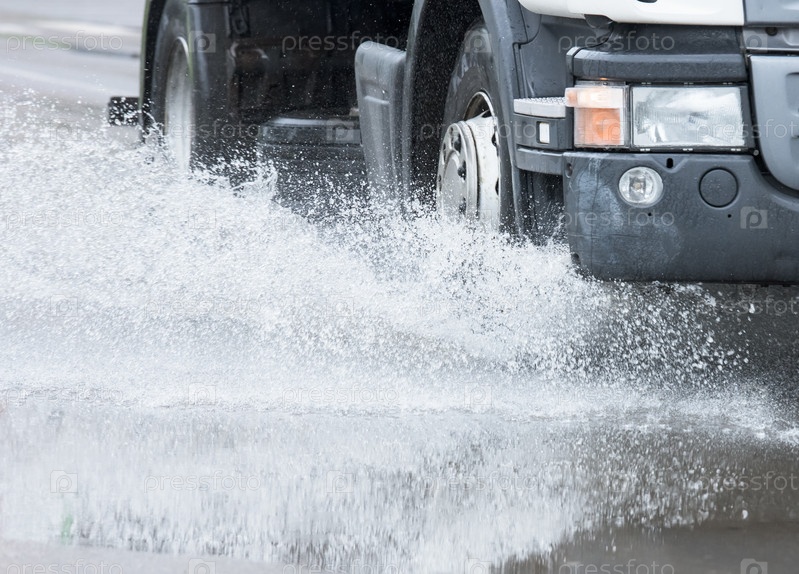 Автомобиль и брызги от лужи