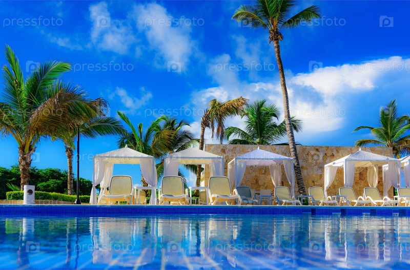 Бассейн с шезлонгами