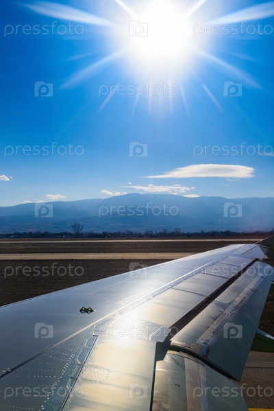 Вид на крыло самолета через окно