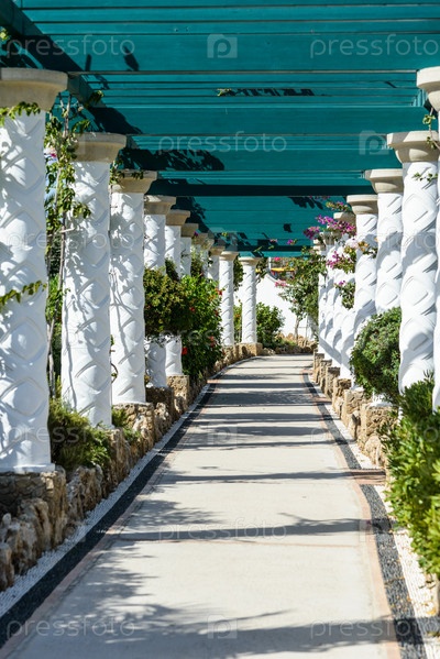Путь через старую аллею с колоннами