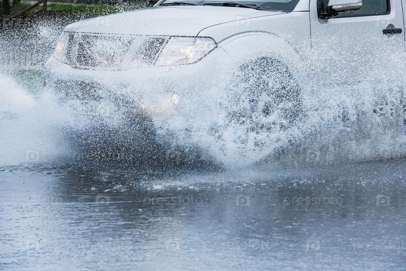 Брызги из-под колес автомобиля