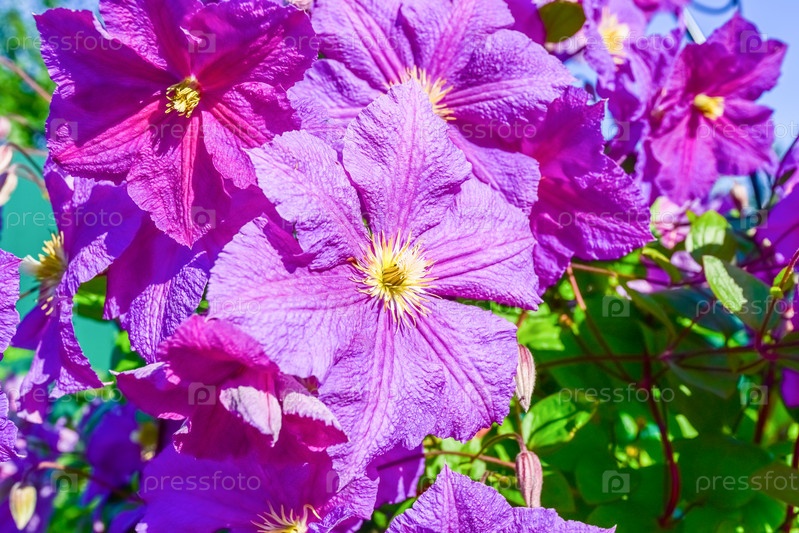 Цветущий куст клематис