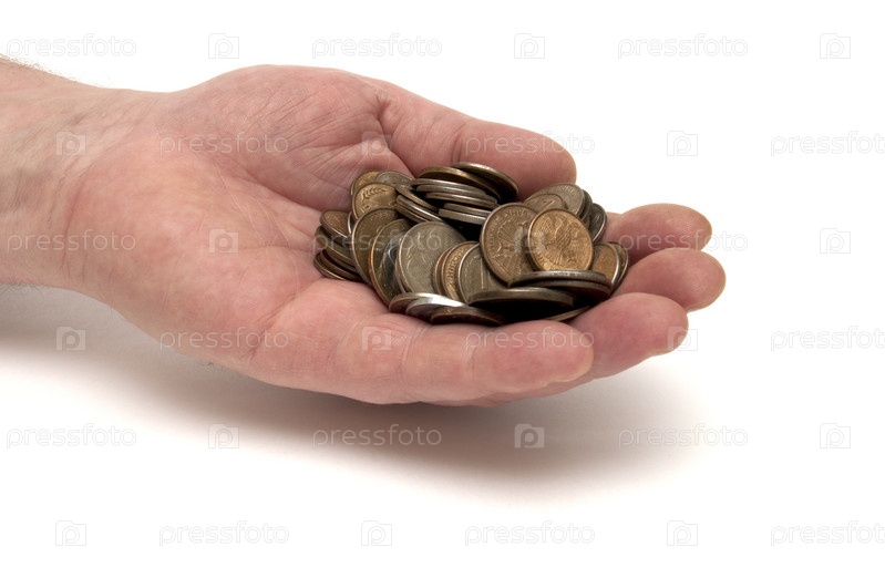 Рука человека держит несколько монет