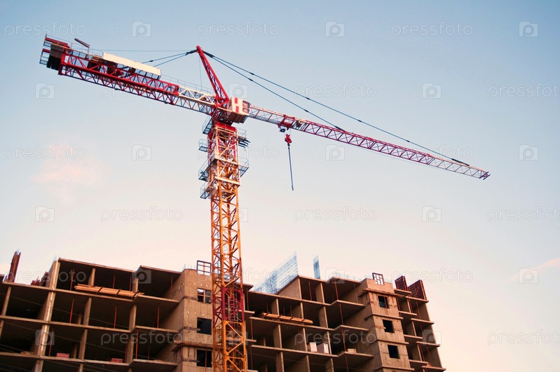 Строительство нового высокого дома с помощью крана