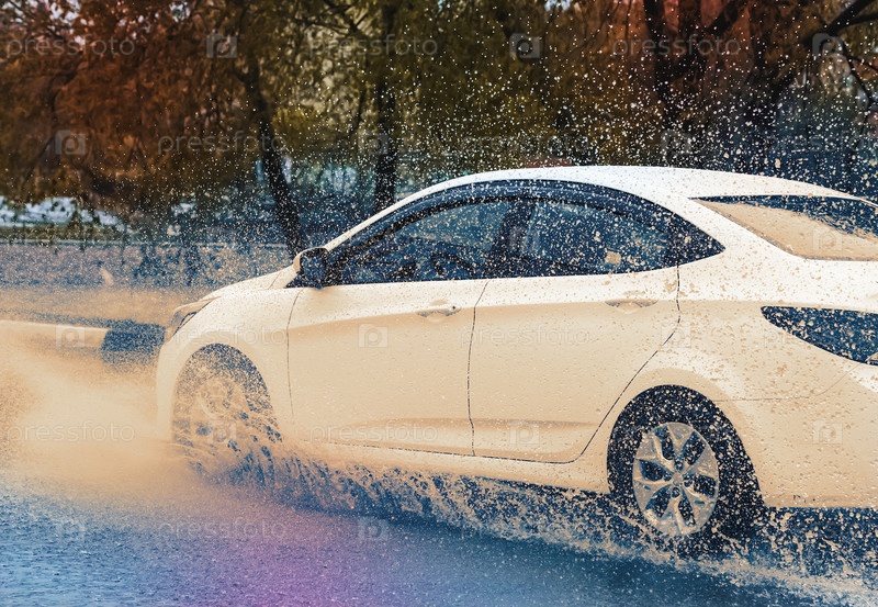 Брызги из-под колес автомобиля