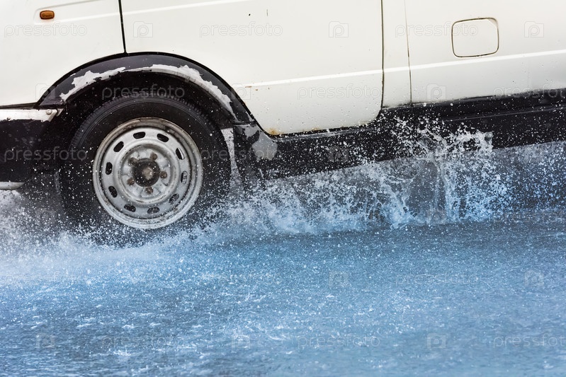 Брызги из-под колес автомобиля
