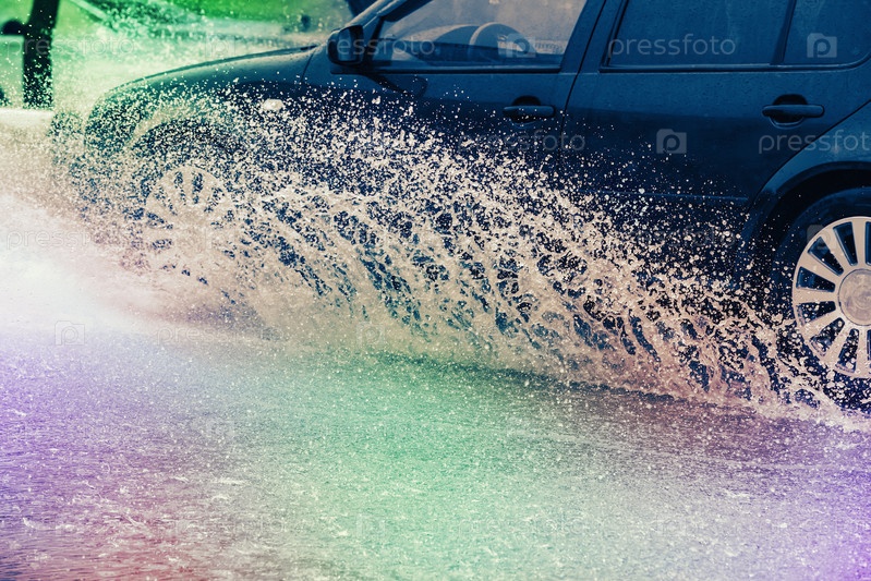 Брызги из-под колес автомобиля