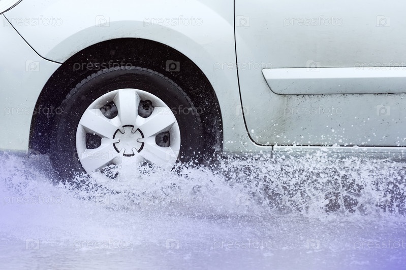 Брызги из-под колес автомобиля