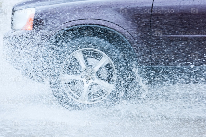 Брызги из-под колес автомобиля